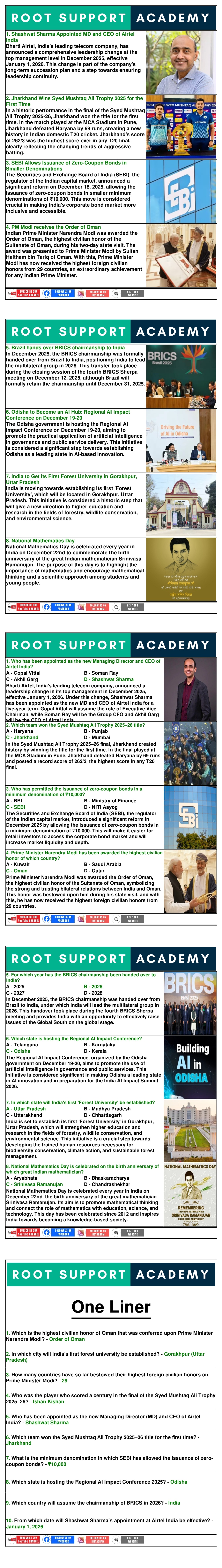 Monthly Current Affairs One Liner