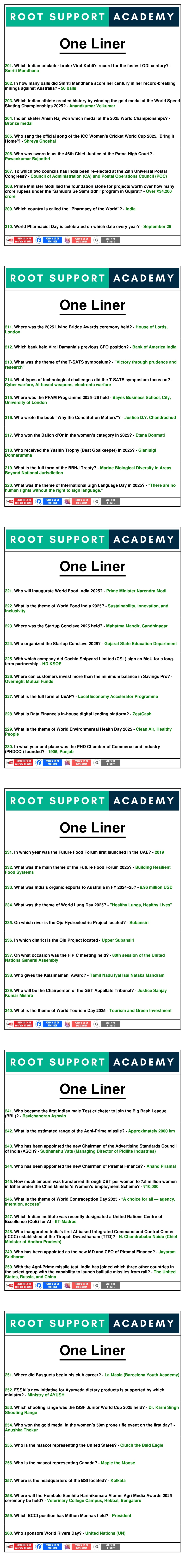 Monthly Current Affairs One Liner- September, 2025